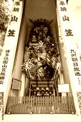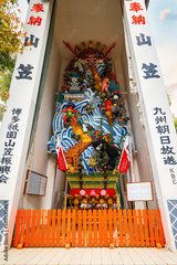 Fukuoka, Japan - Nov 20 2022: Kazari Yamakasa or large stationary festival floats at Kushida shrine, used during the Hakata Gion Yamakasa festival, a famous summer event in Hakata