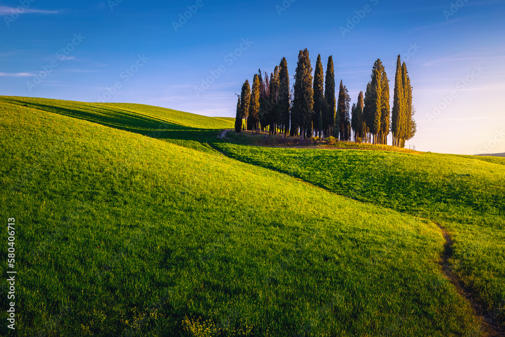 Idyllic summer scenery at sunset in Tuscany, Italy