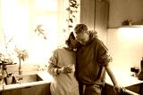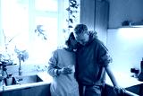 Loving Same Sex Male Couple At Home Hugging Together In Kitchen With Hot Drinks