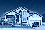 Brand new residential house with car parked on driveway in front