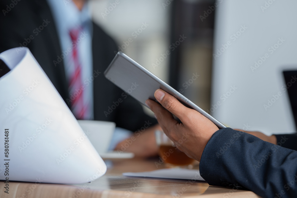 Speaker Motivational by present document to boss colleagues to decide. coworker coach explain Analysis Statistics Report drawing graph presentation to business improvement teamwork.