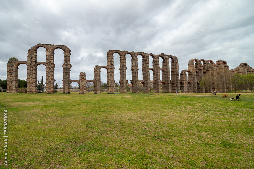 Los Milagros Aqueduct, located in the Spanish city of Merida, Spain