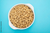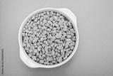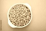 dry uncooked soya in white small bowl