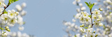 Spring apple blossom with white flowers in the park on a bright sunny day. Close-up, selective focus.