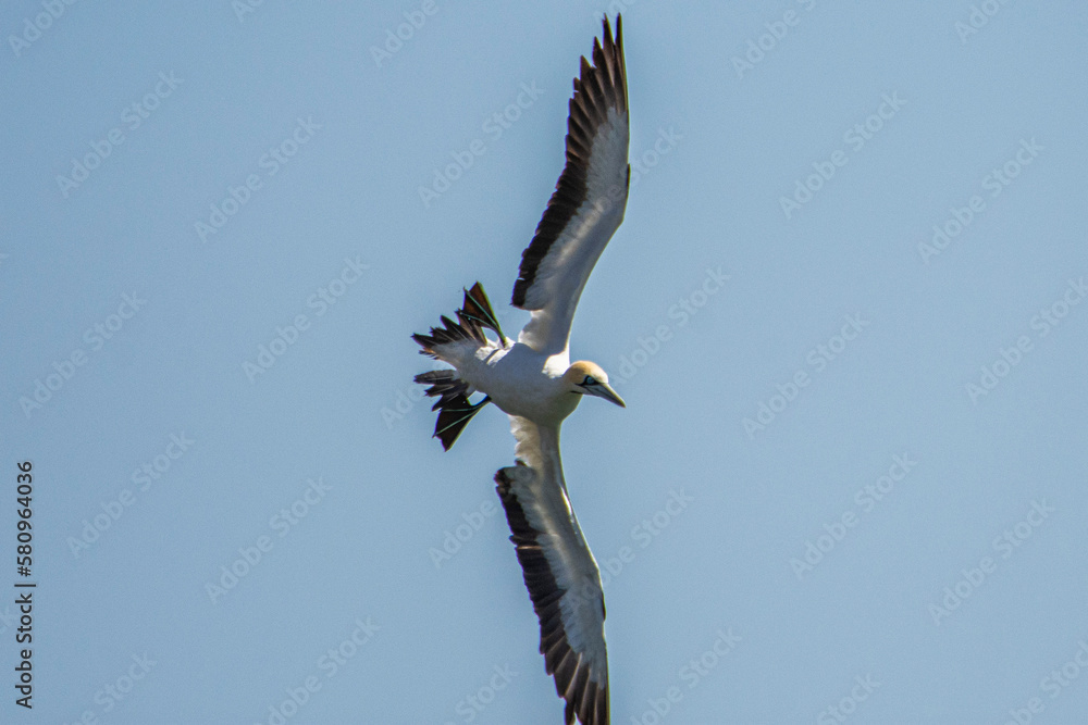 Flying cape gannet in Luderitz, Namibia