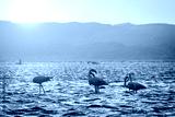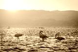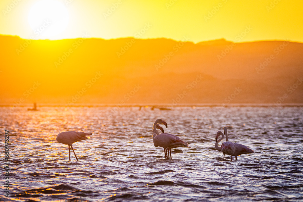 Flamingos during sunset in Luderitz, Namibia