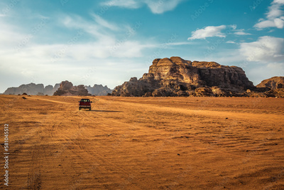 Desert safari - offroad vehicle in the UNESCO world heritage site Wadi Rum. Jordan