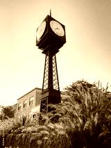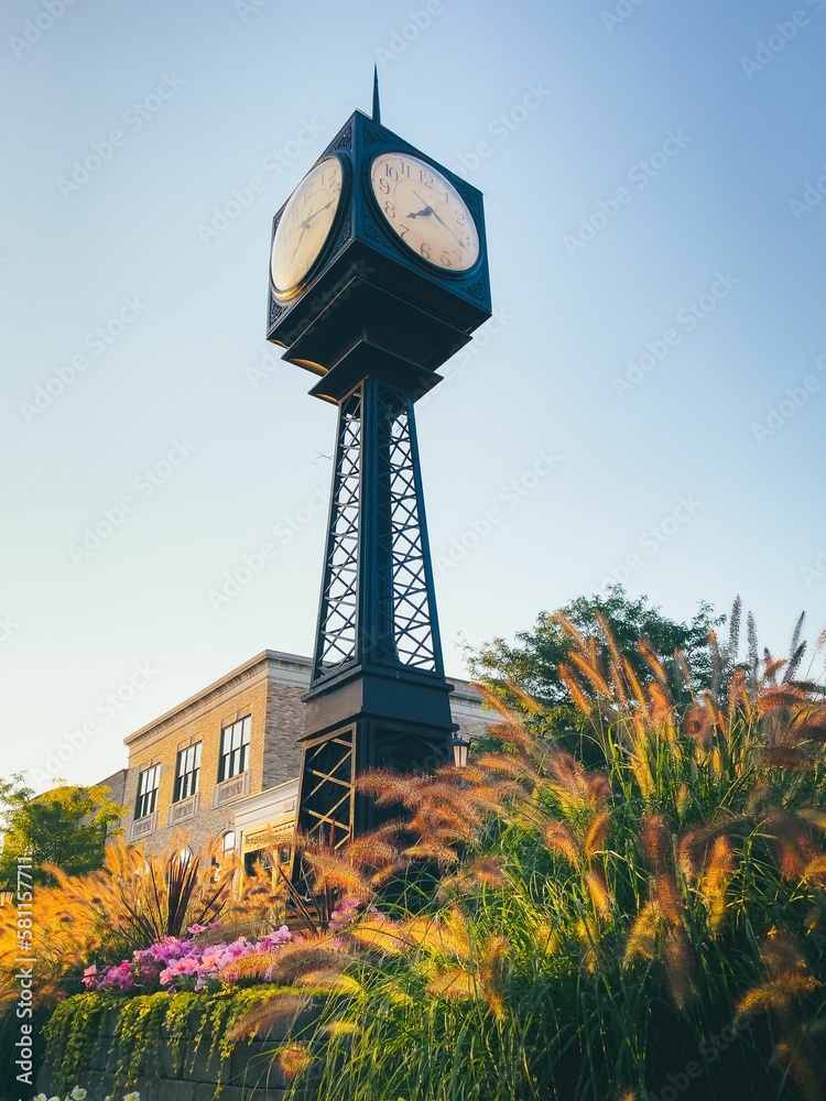 Vertical shot of a clock in a garden on a sunny day in Northville, Michigan