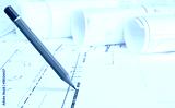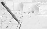 Pencil draws on architectural drawing background