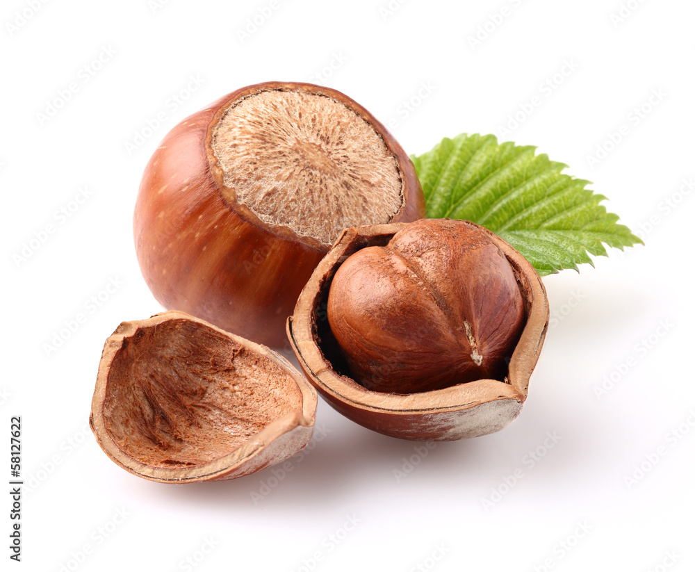 Hazelnuts with leaf