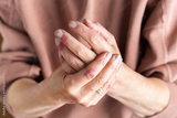 Woman hands with atopic dermatitis, eczema, allergy reaction on skin