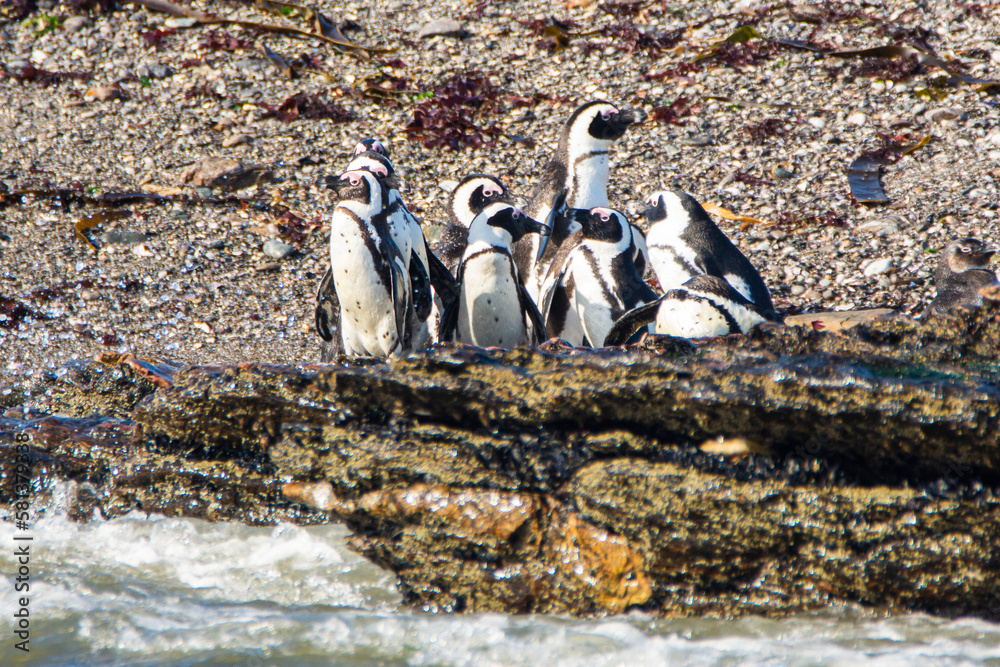 African penguins, Spheniscus demersus, on Halifax Island in Namibia