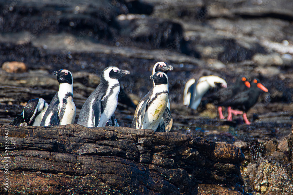 African penguins, Spheniscus demersus, on Halifax Island in Namibia