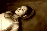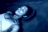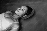 Middle-aged African American woman floating in tank filled with dense salt water used in meditation, therapy and alternative medicine.