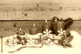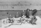 Adventsgesteck - vier Kerzen im Schnee - Textfreiraum