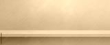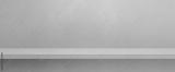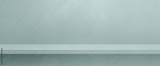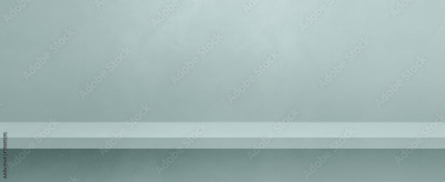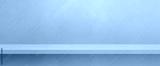 Empty shelf on a light blue concrete wall. Background template. Horizontal banner mockup