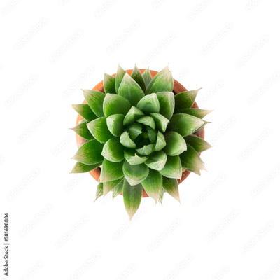 Top view small green cactus plant in pot isolated on transparent background.
