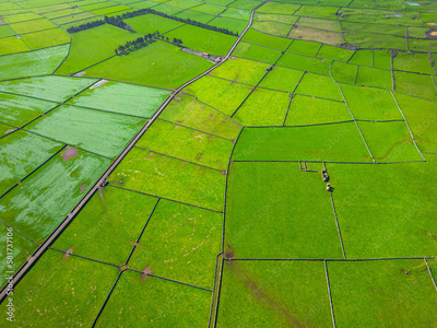 Terceira Aerial View. Beautiful Green Terceira Island Landscape near Serra do Cume, Azores Archipelago, in Atlantic Ocean, Portugal.