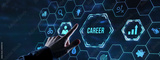 Internet, business, Technology and network concept.Coach motivate to career growth. Personal development, personal and career growth. Potential concepts. Virtual button.