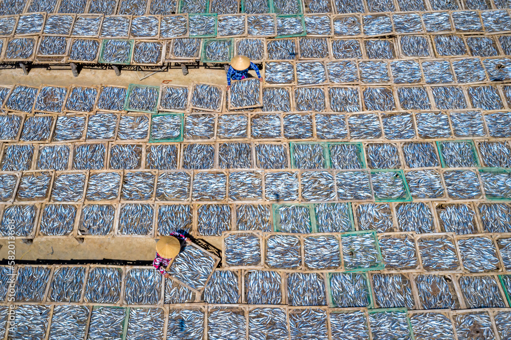 Fishermen dry fish after catching at sea at Long Hai town, Ba Ria-Vung Tau province, Vietnam
