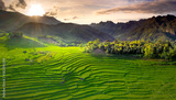 Panoramic view of beautiful green terraces of Pu Luong commune, Thanh Hoa province, Vietnam