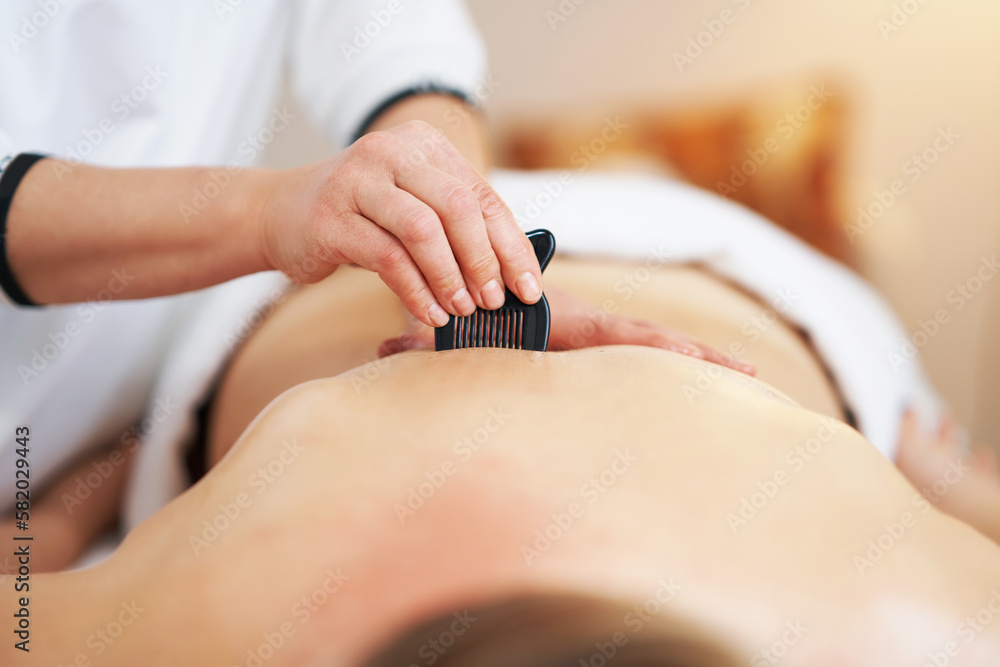 Woman having a gua sha massage in salon