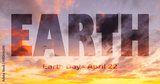 Lettering Earth Day April 22 on the background of sunset sky. Earth day concept, protection of the planet from pollution, improvement of environmental ecology and nature conservation.