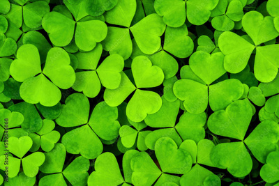 Background with green clover leaves for Saint Patrick's day. Shamrock as a symbol of fortune.
