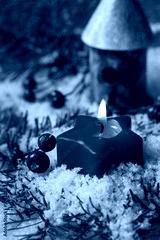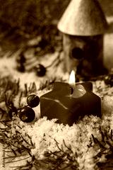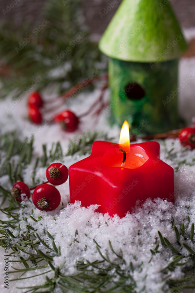 Weihnachten - Deko mit Kerze, Schnee und Vogelhäuschen