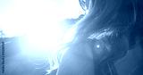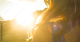 CLOSE UP, LENS FLARE Over the shoulder view of pretty young lady watching sunset