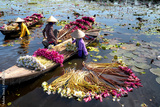 Rural women in Moc Hoa district, Long An province, Vietnam are harvesting water lilies. Water lily is a traditional dish here