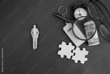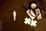 glasses, calculator, puzzle, money, time, business concept. business success. business development. business strategy