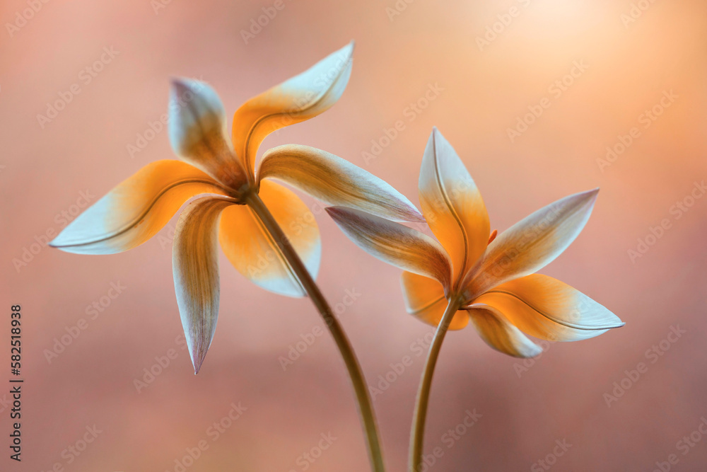 Żółte tulipany botaniczne Tarda na jasnym tle