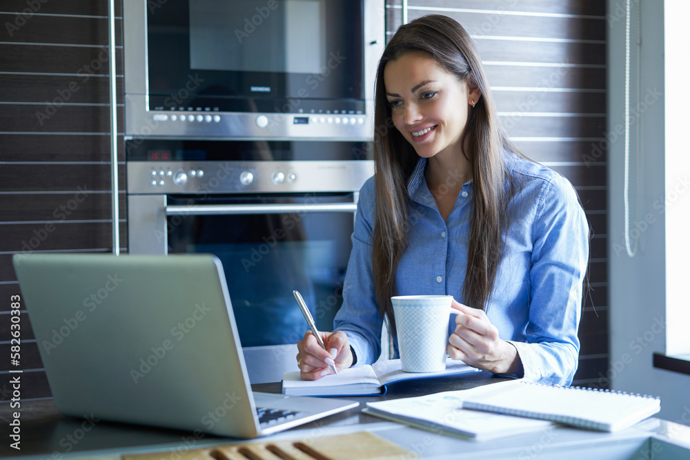 Beautiful fitness woman doing a plank exercise watching online tutorials on laptop, training in living room. Healthy lifestyle. Girl goes in for sports at home