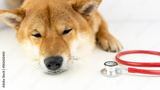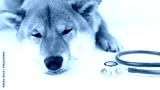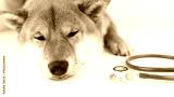 a dog with a stethoscope at a veterinarian's appointment
