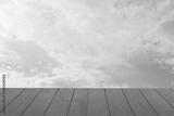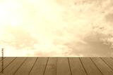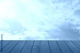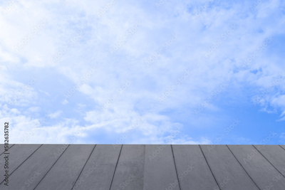 Empty wooden table top isolated on sky background, used for display or montage your products.