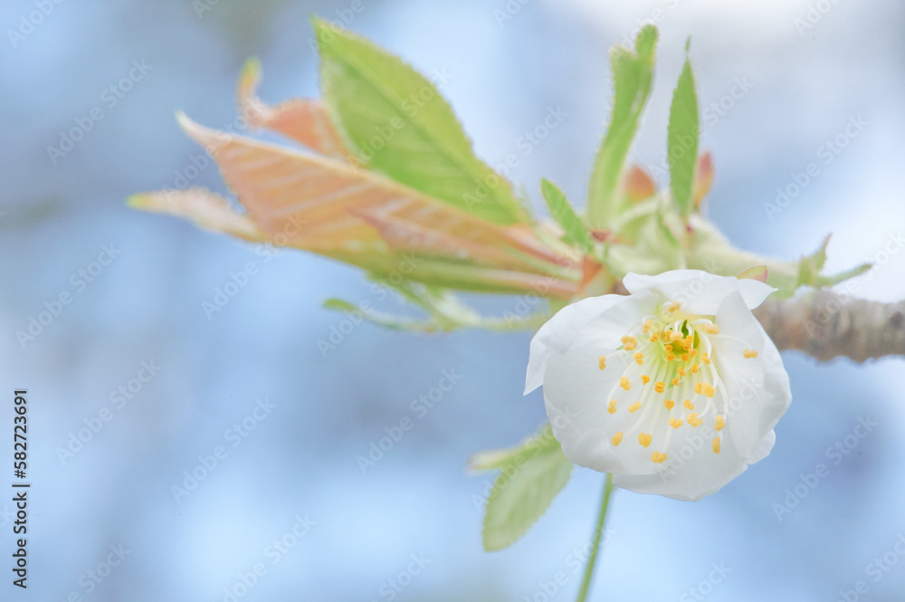 Cherry blossoms (Prunus Avium) in all their splendor in early spring. Close-up of white flowers.