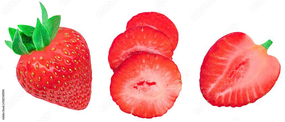 Juicy Strawberry isolated on white background. Creative layout with Strawberry fruits Top view. Flat lay .