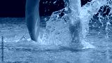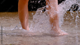 CLOSE UP: Water splashes while young barefoot woman crosses shallow alpine river