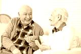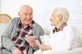 Zwei Senioren spielen Karten zusammen