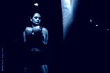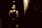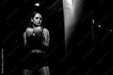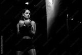 Dark Haired Girl Boxing a Punching Bag in a Moody Setting