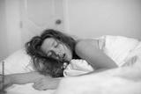 young girl sleeps in the morning in bed and snores loudly with her mouth open, the concept of person have problem with sleep and breathing