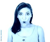 Surprised face of woman stare to camera, isolated on white background. Surprise expression face - head and shoulders of a amazed girl. Wao - omg concept