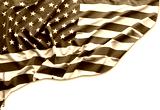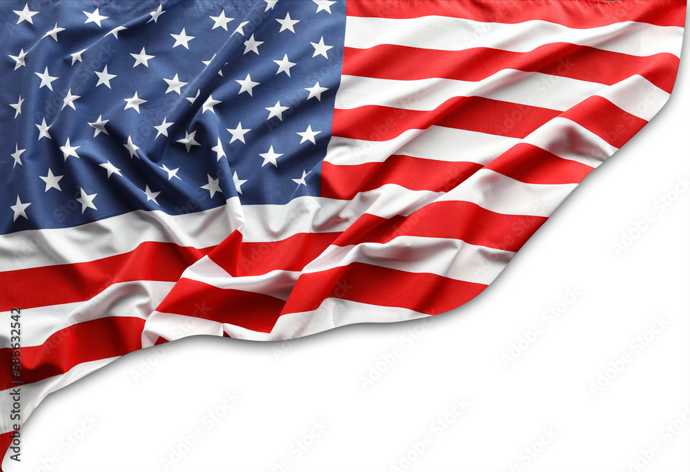 Closeup of American flag on white background