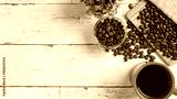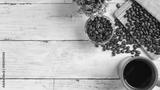 白い木目テーブルとコーヒー
