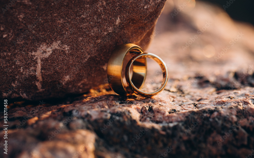wedding rings on the sand