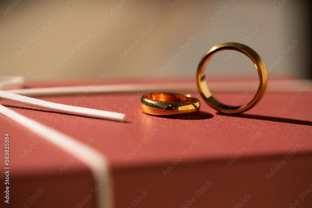 close up of a ring. Wedding rings. Shadow. Photo. Background. Couple love. Love photo.