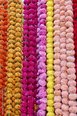 close up of colorful flower garlands