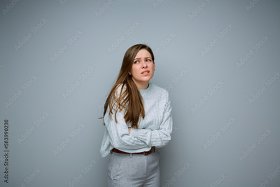 Woman with stomach pain. isolated portrait.