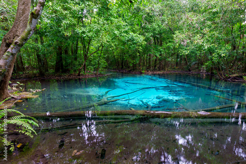 Emerald Pool at Krabi Province, Thailand. Amazing nature crystal clear emerald canal. Beautiful nature landscape